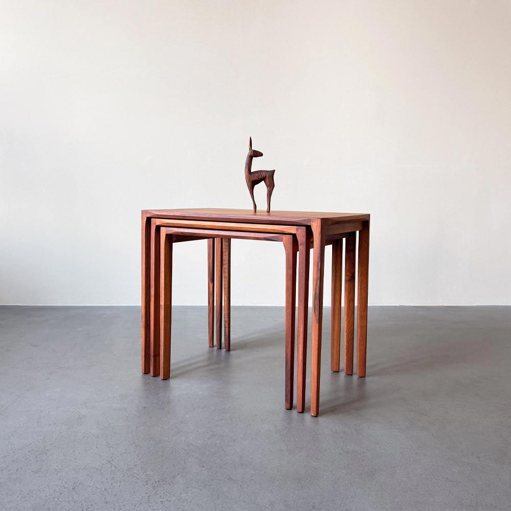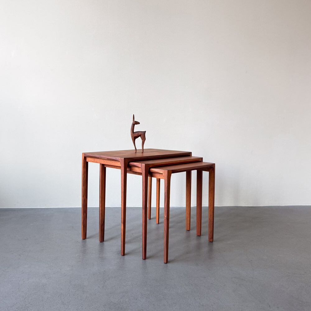 Die drei Tische sind flexibel einsetzbar, lassen sich platzsparend ineinander schieben und eignen sich als Beistell-, Kaffee- oder Präsentationstische im Wohn- oder Arbeitsbereich. In der Designliteratur sind sie dokumentiert und zählen zu den bekannten, gut belegten Entwürfen aus der frühen Renz-Produktion.