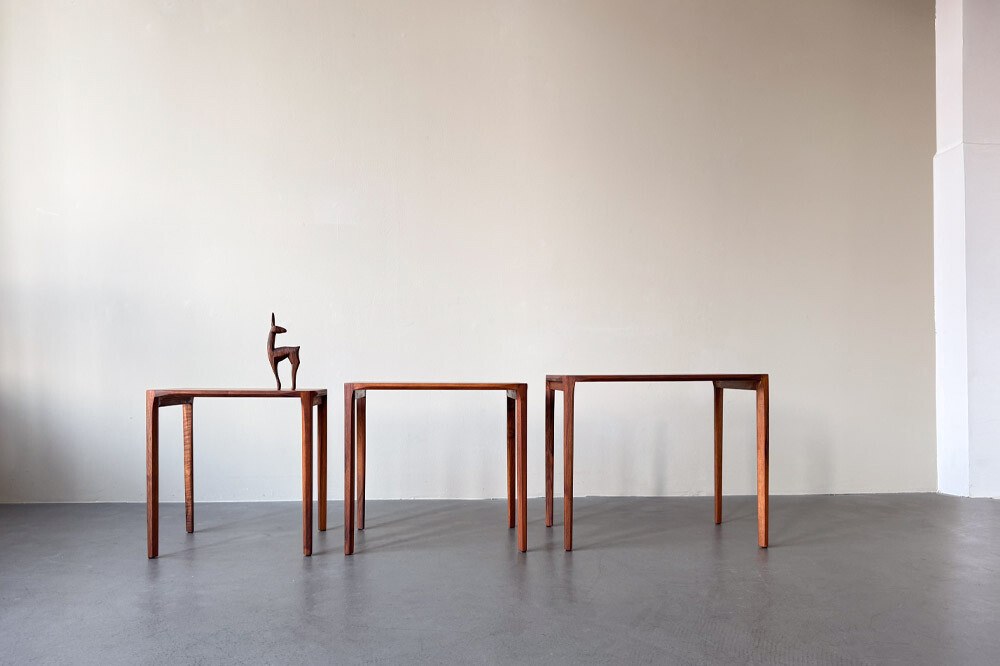 Raabs Gestaltung folgt seinem anthroposophisch geprägten Formverständnis: organische Linien, weiche Rundungen und geometrische Präzision verbinden sich zu einer ausgewogenen, ruhigen Erscheinung. Durch ihre schlanke Silhouette wirken die Tische leicht und elegant, ohne an Stabilität einzubüßen. Ihre klare, reduzierte Formensprache fügt sich mühelos in unterschiedliche Wohnsituationen ein – von klassisch bis modern.