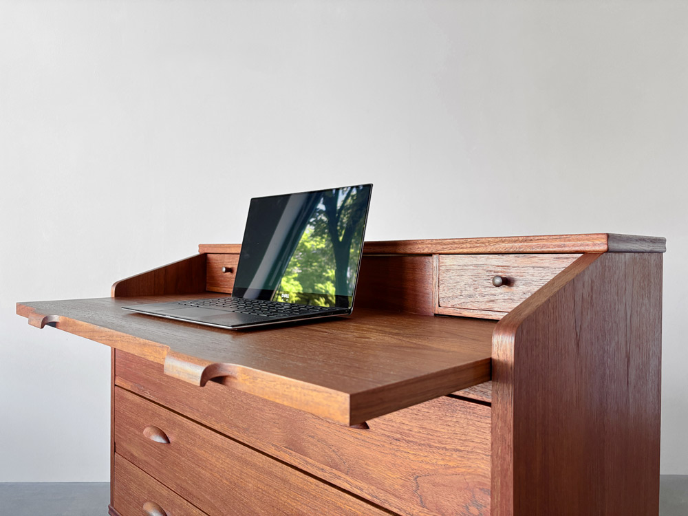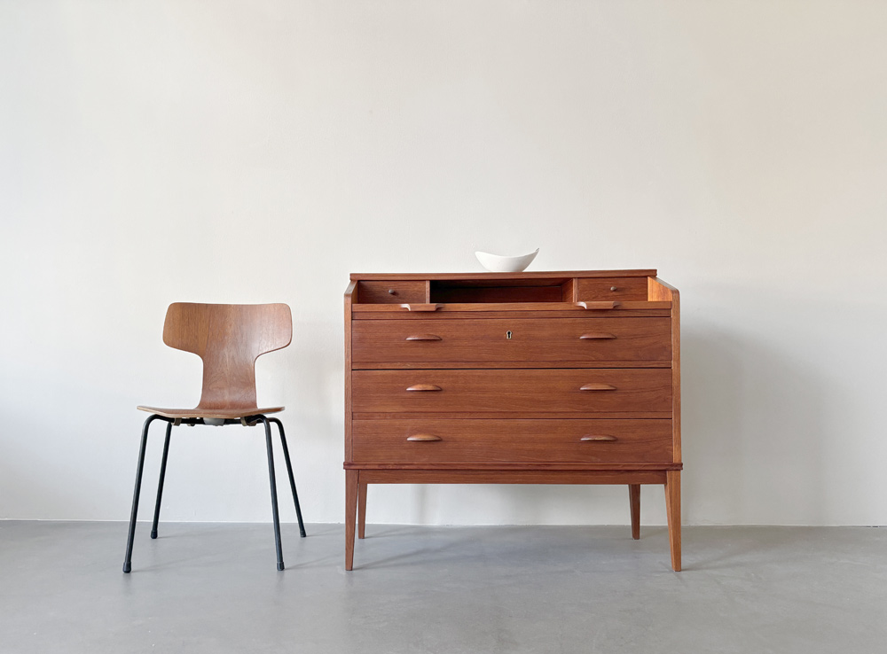 Die elegante Sekretär-Kommoden Kombination ist ein Entwurf der 1950er Jahre des Designers Børge Lerche für den dänischen Hersteller Riis-Antonsen Møbelfabrik.