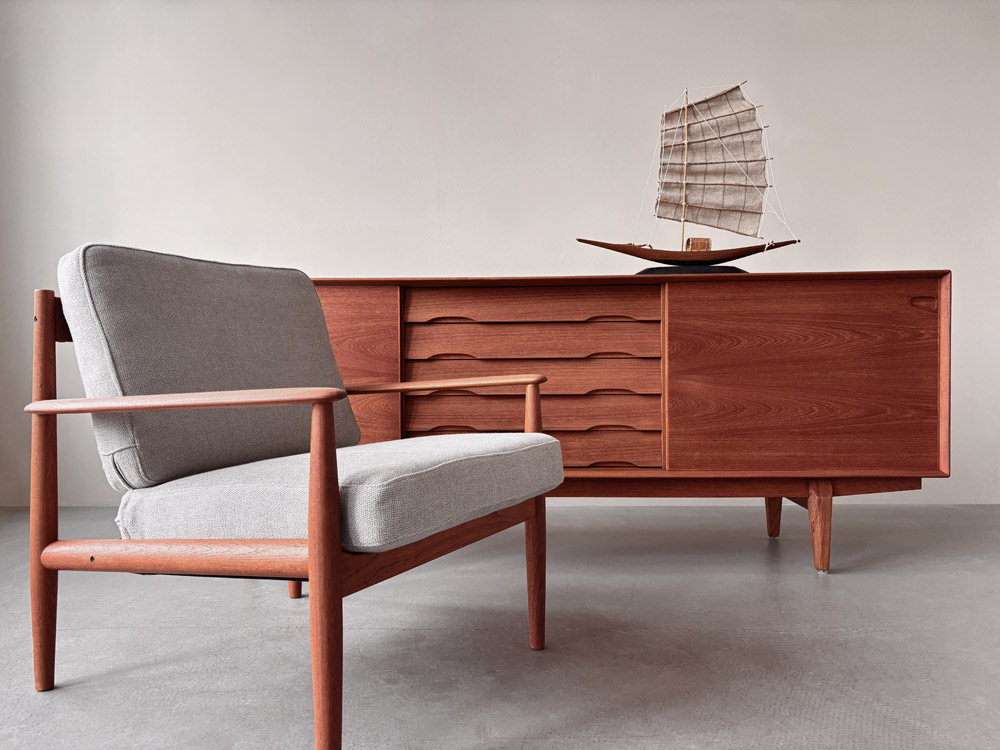 Der im den Foto abgebildete Grete Jalk Sessel (1 von 2) kann ebenfalls erworben werden.