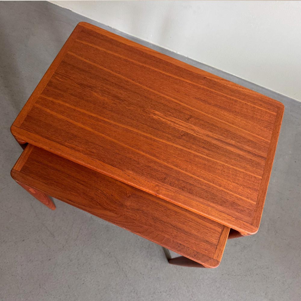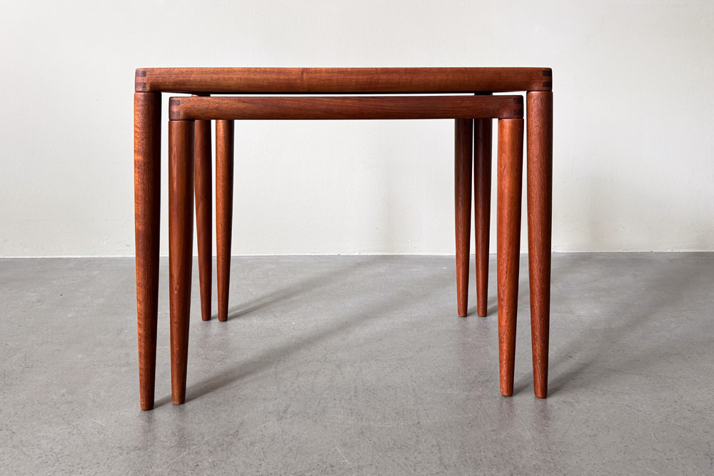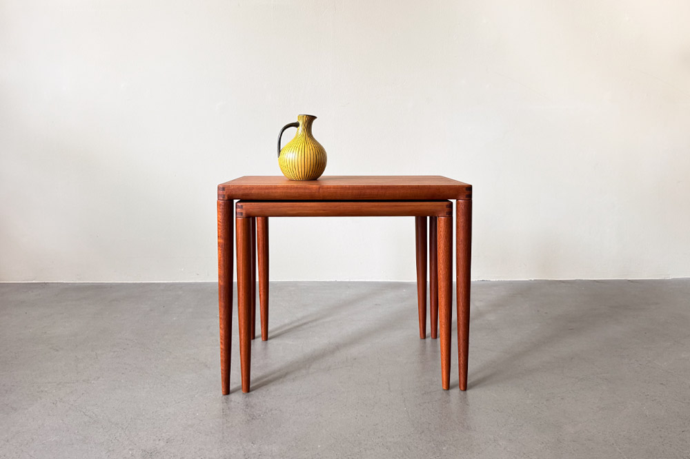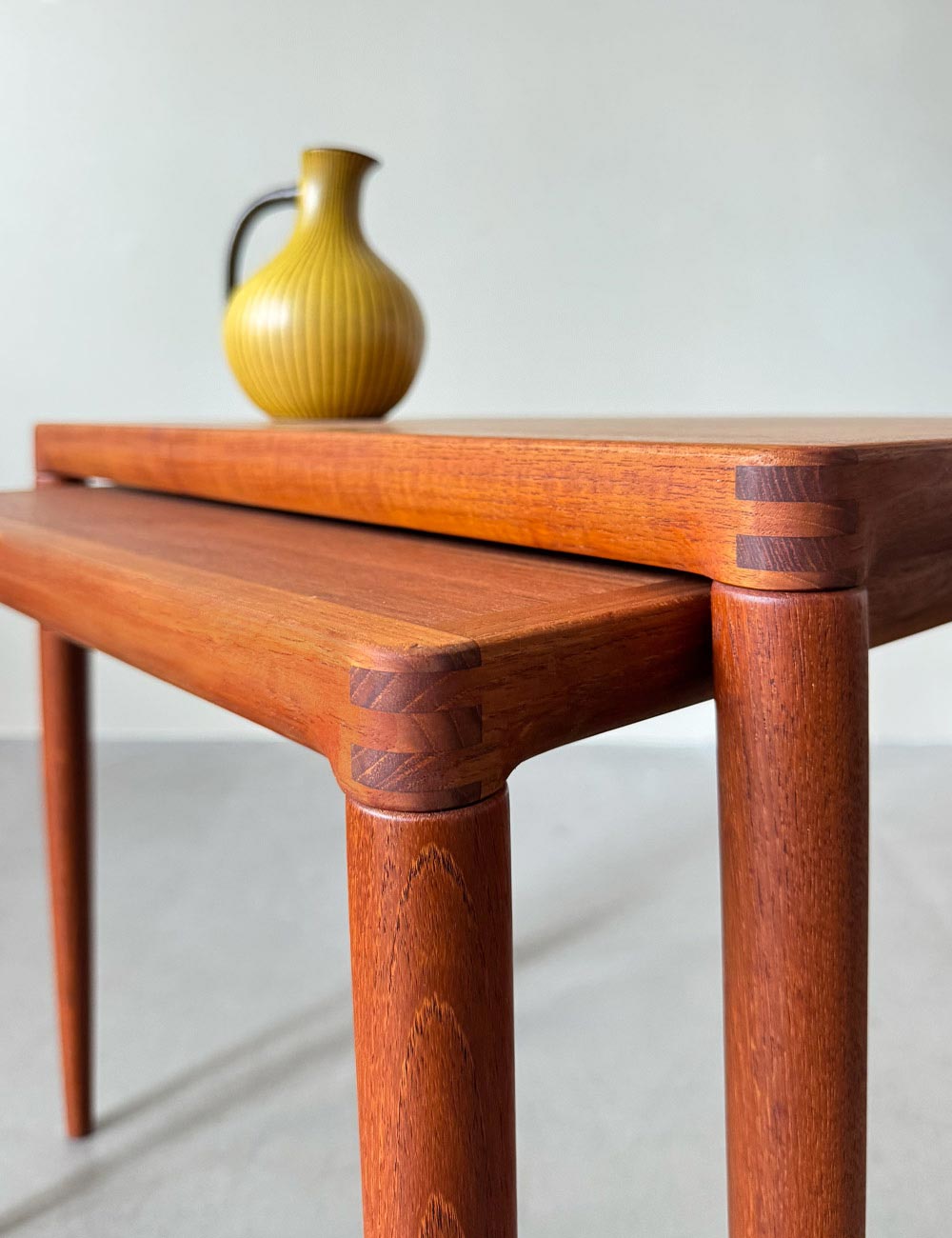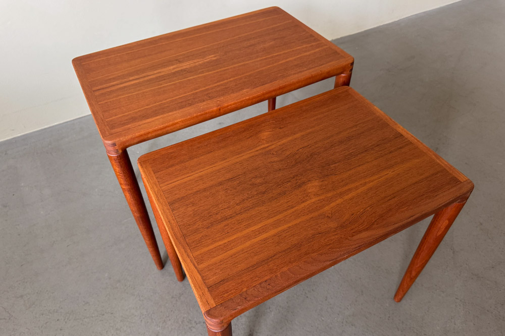 Dieses Set Satztische wurden vom dänischen Designer H.W. Klein f Bramin in den 1960er Jahren entworfen. Der Entwurf steht für die skandinavische Designtradition jener Zeit – klare Linien, funktionale Gestaltung und handwerkliche Präzision.